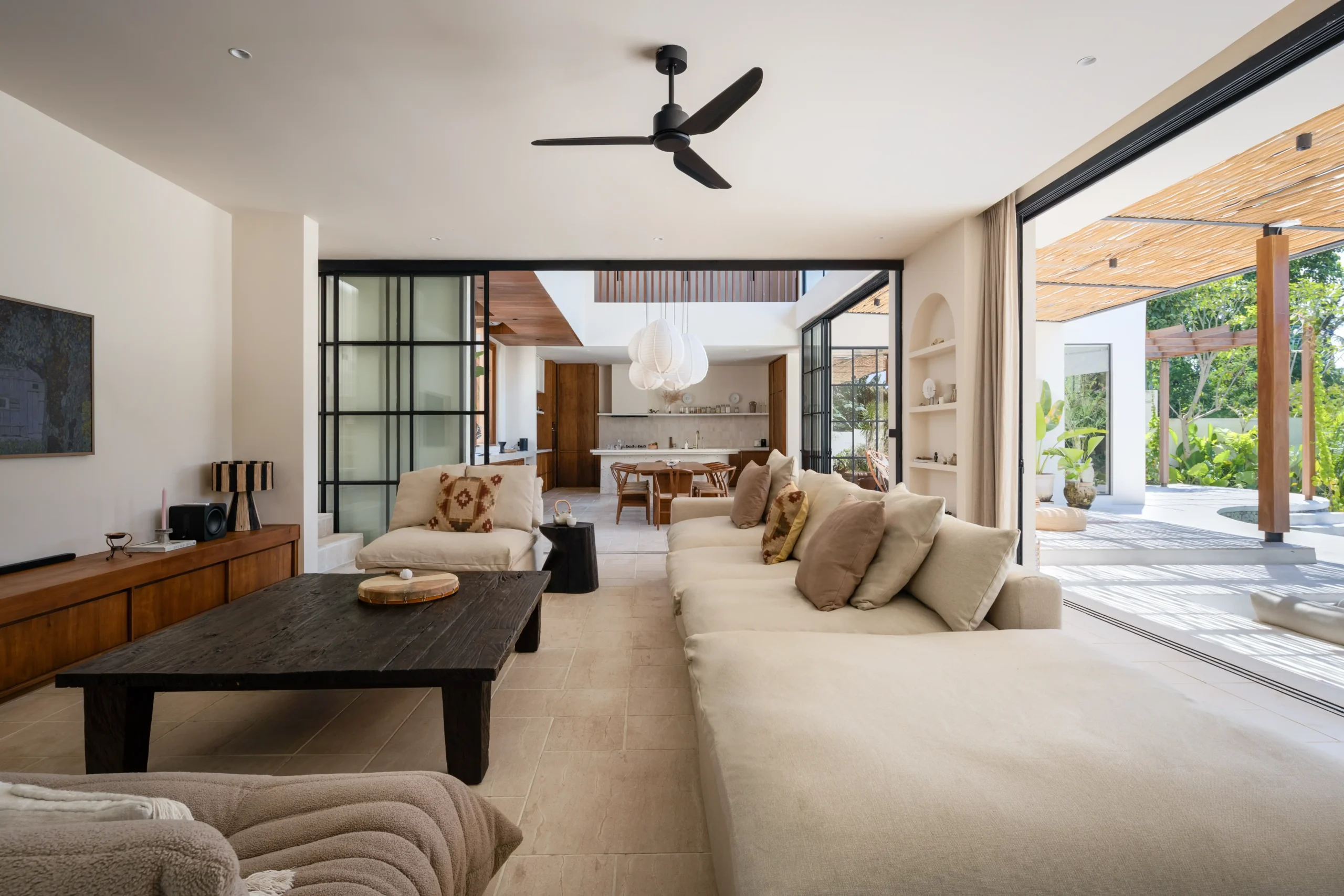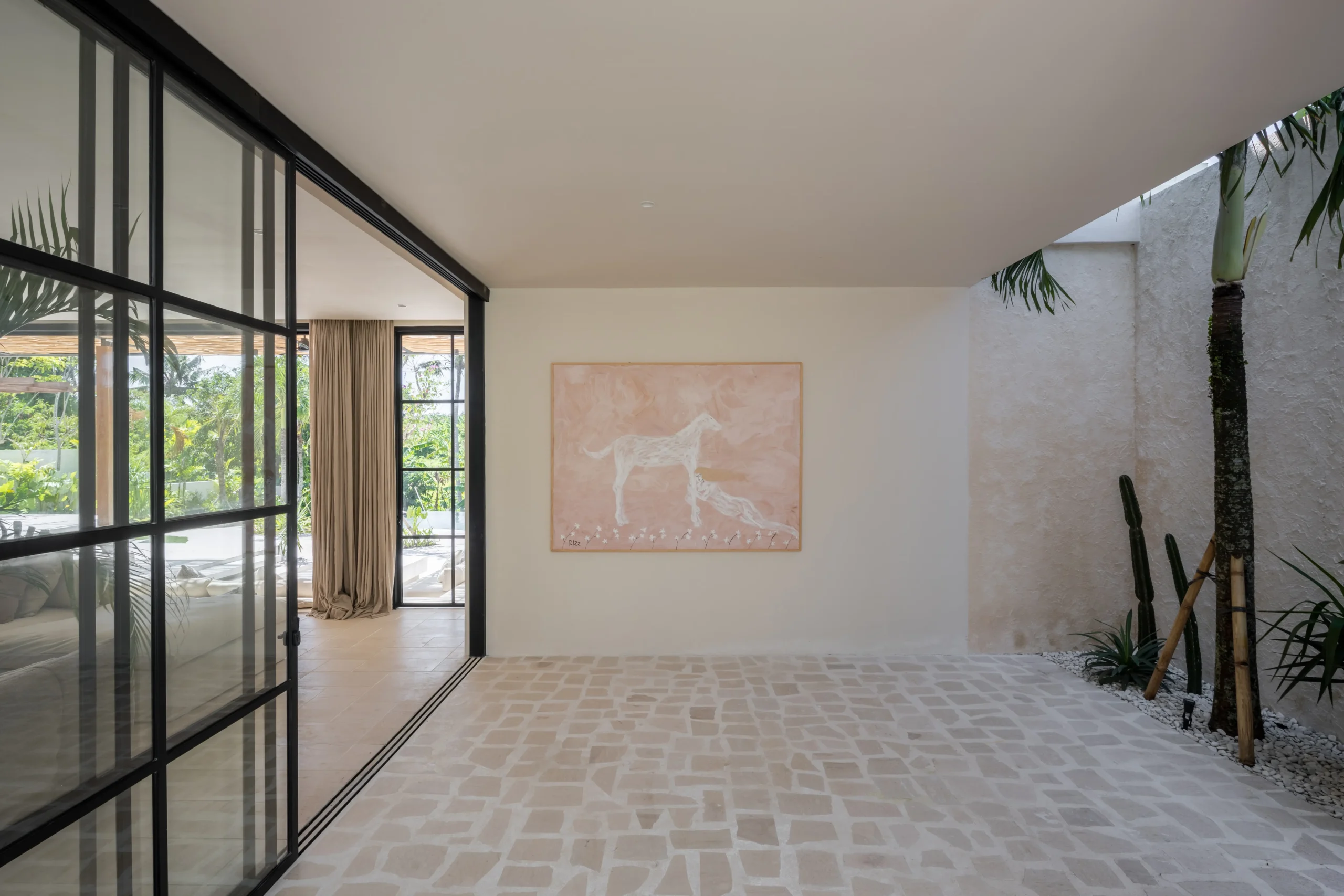 This charming family villa is owned by a warm and adventurous Dutch couple with three children. Designed to reflect both comfort and connection, the home fuses a modern European interior sensibility with tropical Balinese charm. It features expansive living areas, open-air lounges, and a lush garden space ideal for play and relaxation.